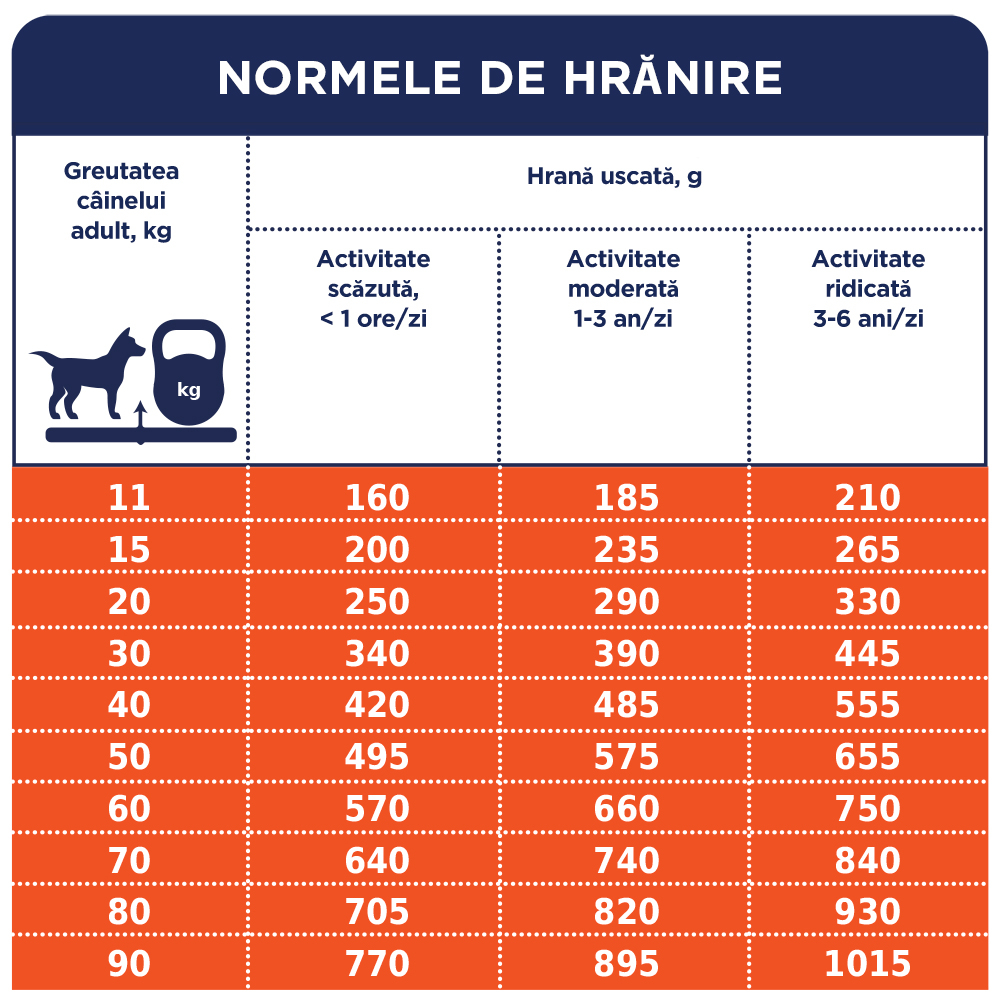 A se păstra la loc uscat, răcoros, ferit de soare. Hrana trebuie introdusă treptat în alimentația animalelor (cel puțin în primele 5 zile). Asigurati animalului acces permanent la apă potabilă curată. Normele individuale de hrănire pot varia în funcție de vârsta, rasa, nivelul de activitate al animalului. Hrănire zilnică recomandată: cantitatea zilnică de hrană este indicată în tabelul de hrănire.