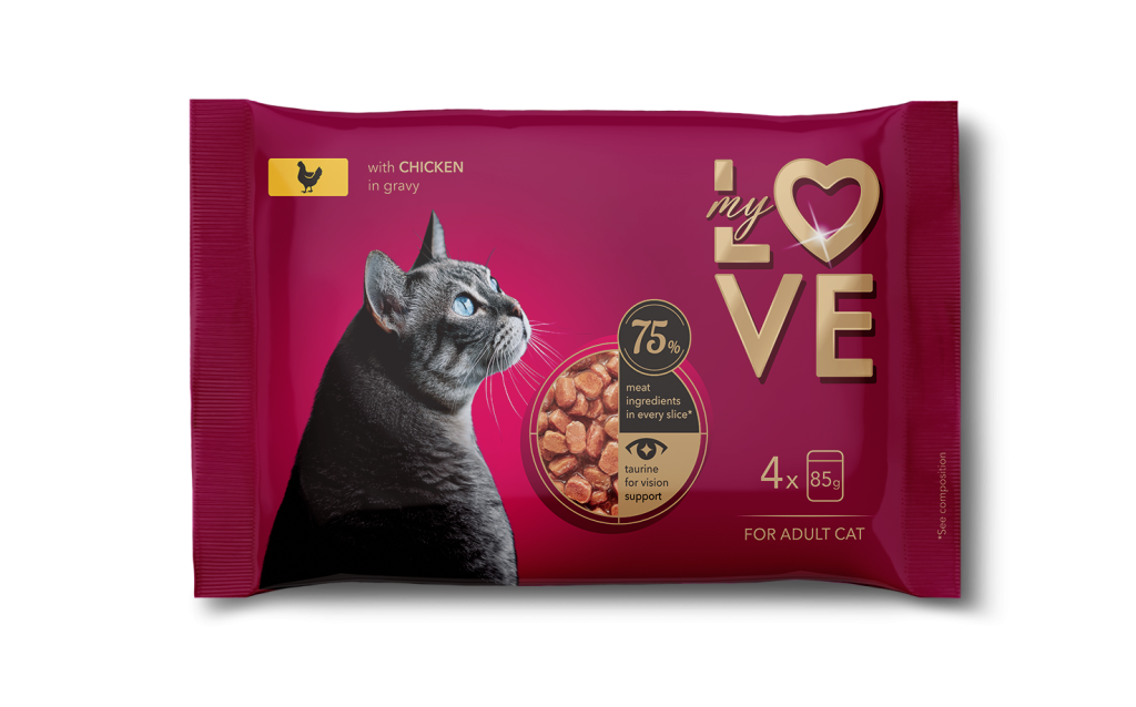 My Love Hrană completă conservată pentru pisicile adulte, Cu găină în sos, set 4x85g